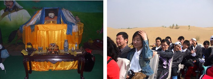 隨后我們進入了成陵中最壯觀的蒙古歷史文化博物館,參觀長達206米的《蒙古歷史長卷》油畫是世界上最長的油畫和各種蒙古用品模型。