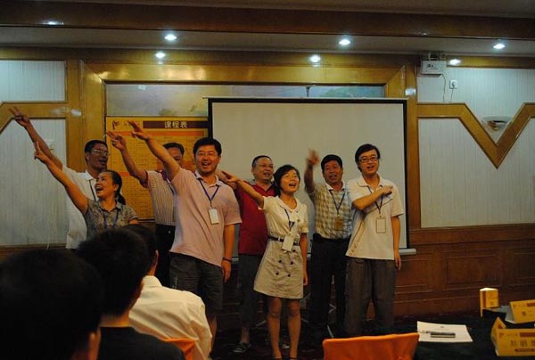 活動為期兩天,由“廈裝”公司中高層管理人員及大界公司講師、輔導(dǎo)員共27人參加,培訓(xùn)活動在大界公司講師的主持下氣氛異常的熱烈,“廈裝”公司及各控股子公司各級管理人員帶著“團(tuán)結(jié)互助,開拓進(jìn)取”的思想而來,對課程要求很快就熟悉起來,并按照培訓(xùn)的要求進(jìn)行分組、選隊(duì)長、創(chuàng)造隊(duì)歌及隊(duì)手勢等有趣的活動。