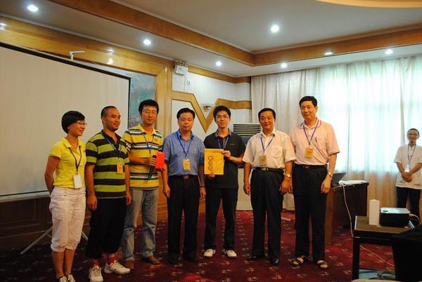 “廈裝”公司傅清良總經(jīng)理(左四)給活動優(yōu)勝隊(duì)頒獎